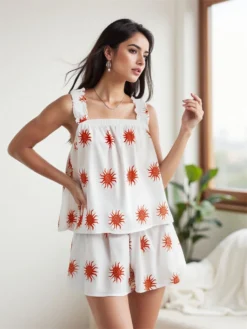 Women’s Casual 2 Piece Outfits Sleeveless Sun/Heart Print Tank Tops + Shorts Set Loungewear