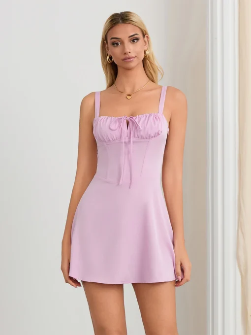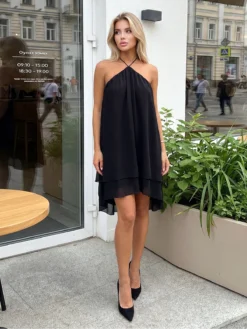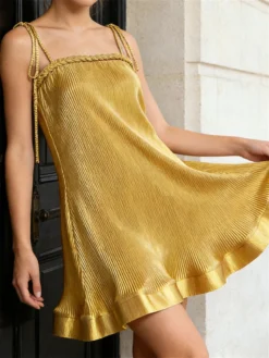 Women Summer Dress Sleeveless Halter Cutout Pleated Swing Dress for Party Club Elegant Sexy Streetwear
