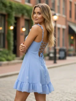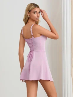 Women Summer Sexy Dress Sleeveless V Neck Halter Backelss Mini Dress for Party Evening Retro Streetwear