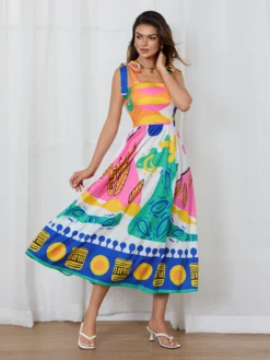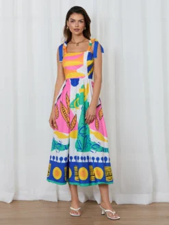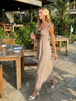 Women’s Sleeveless Playsuits Dress Spaghetti Strap Slim Waist Open Front Long Dress Summer Bohemian Casaul Sundress