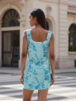 Summer Sequin Tank Mini Dress for Women Square Neck Sleeveless Bodycon Floral Dress Fashionable