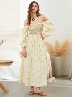 New Women’s Off Shoulder Dress Spring Fall Retro Stylish Long Sleeve A Line Mini Pleated Dress Streetwear