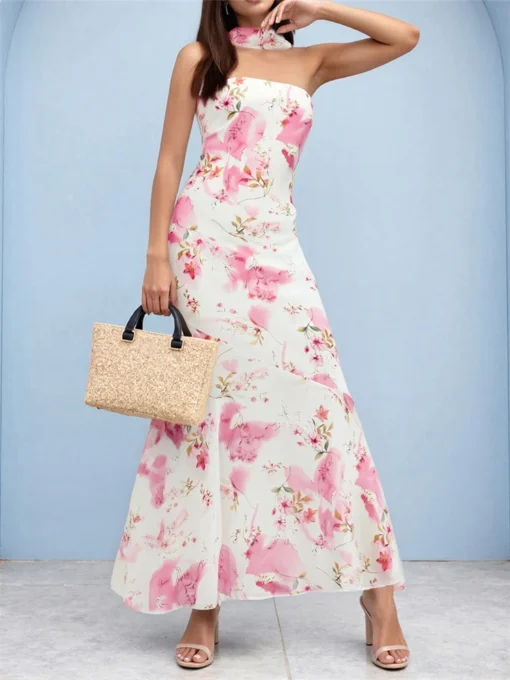 Women Evening Party Long Dress Backless Cut Out Strapless Straight Dress Summer Sexy Elegant Dresses