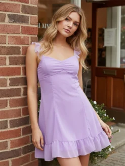 Women’s Fly Sleeve Mini Dress V Neck Ruffle A-line Dress Retro Stylish Casual Bohemian Clothes Summer New