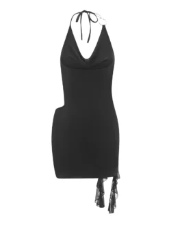 Women Summer Mini Beach Dress Sleeveless Backless Halter Neck Tie Dye/Leopard/Solid Color Dress