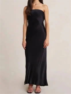 Women Sleeveless Backless Dress, Solid Color Strapless Elegant Cocktail Party Wedding Banquet Dress