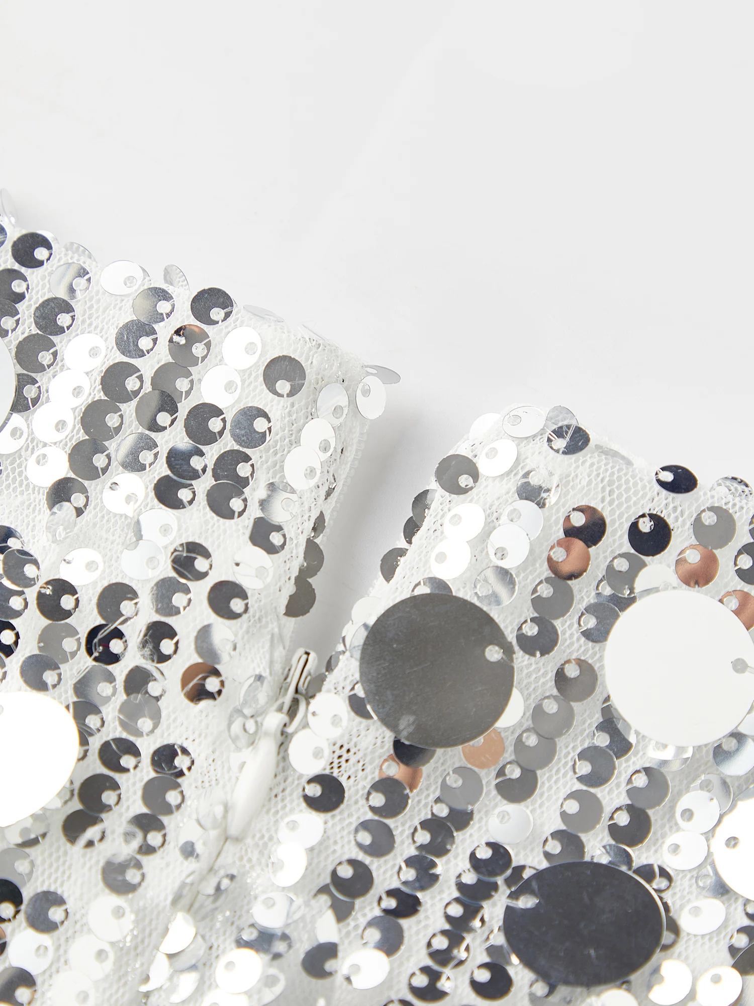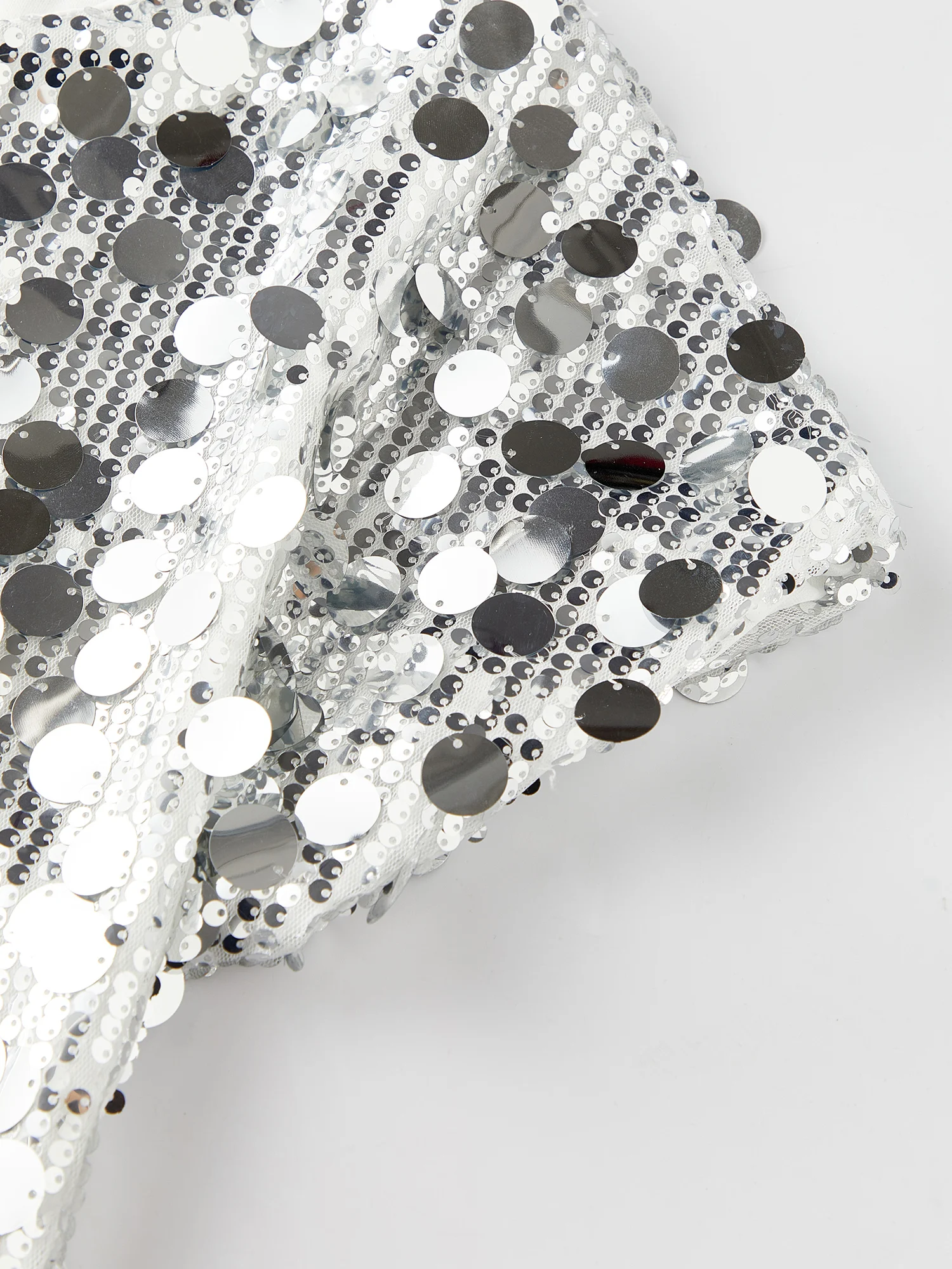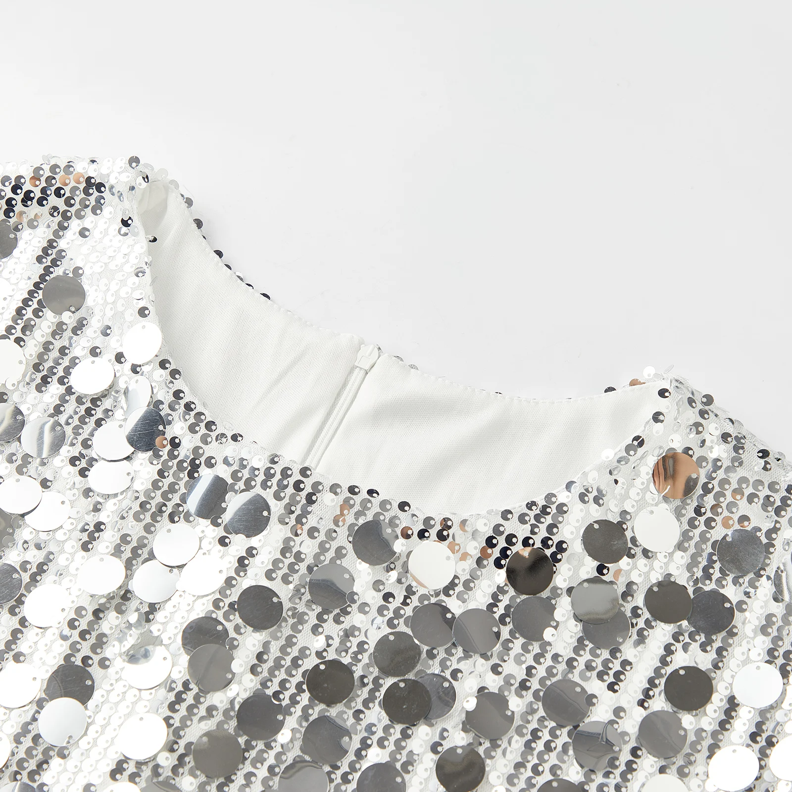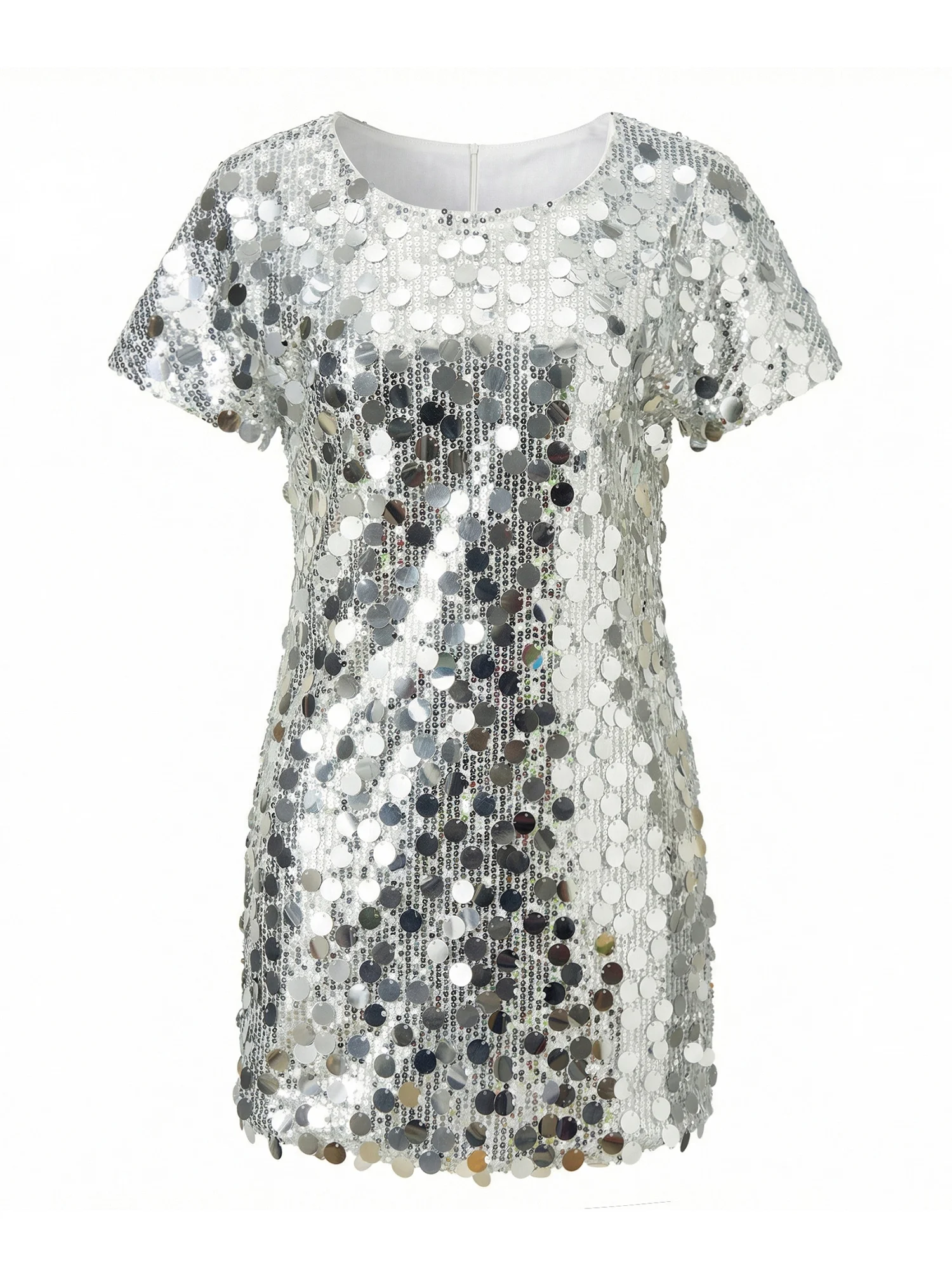 Women Mini Dress Short Sleeve Crew Neck Shiny Sequins Summer Dress Clubwear for Party