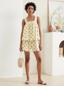 M Tops Length: 16.93 Bust: 30.71 Waist: 26.77 Sweep: 63.78 Shorts Length: 14.17 Hip: 55.91