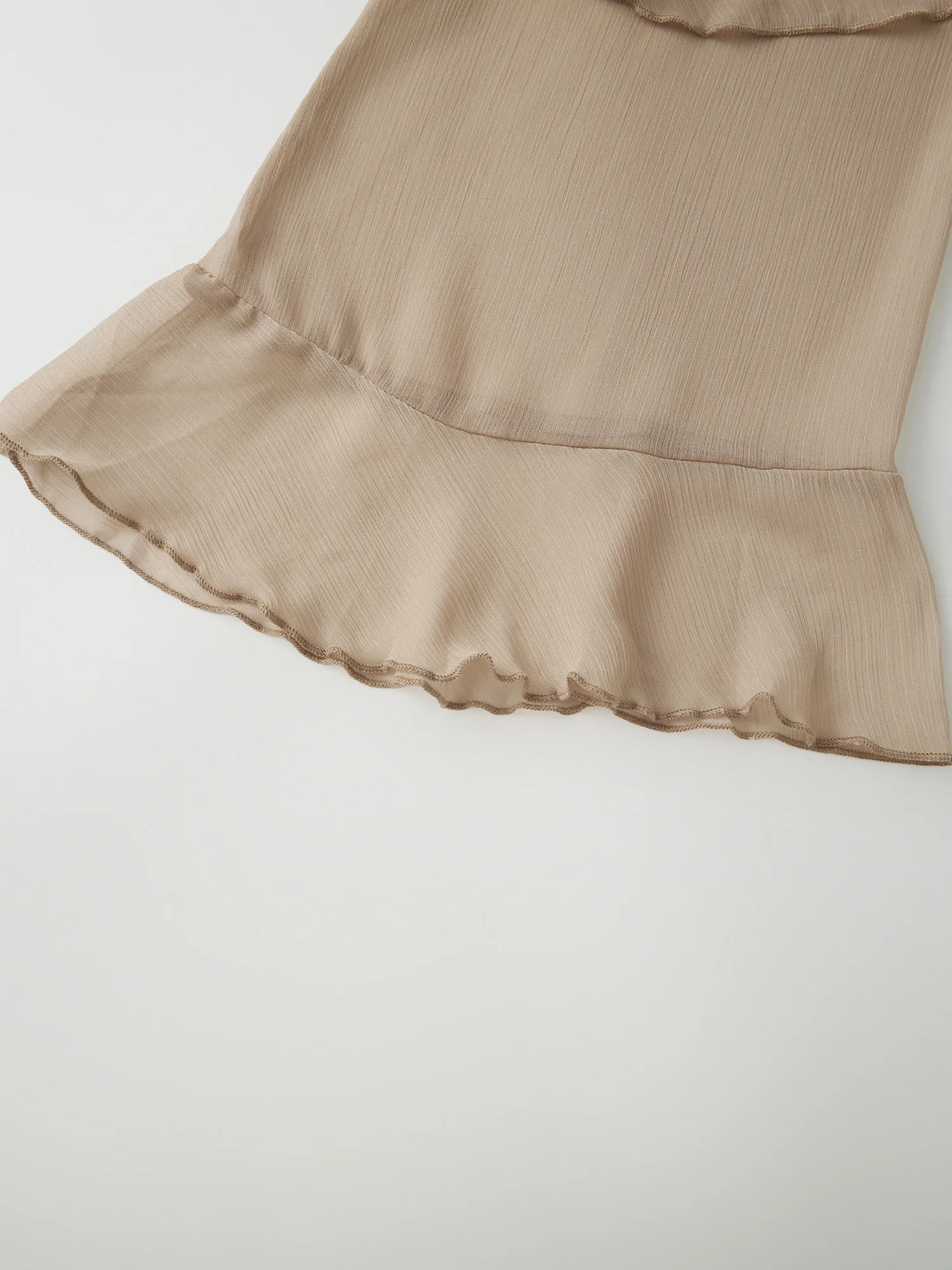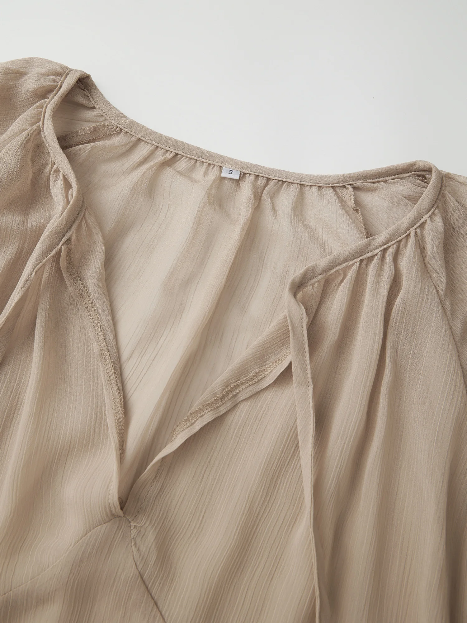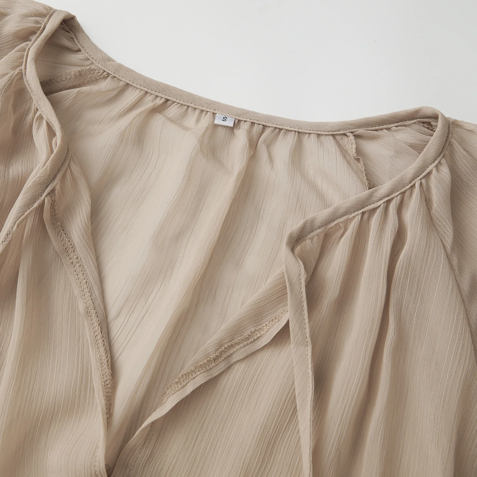 Women’s Spring/Summer Long Dress Loose Fit Stylish Ruffled Trim Solid V Neck Long Sleeve Sheer Dress