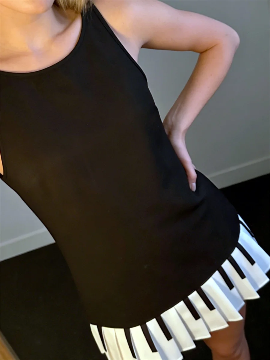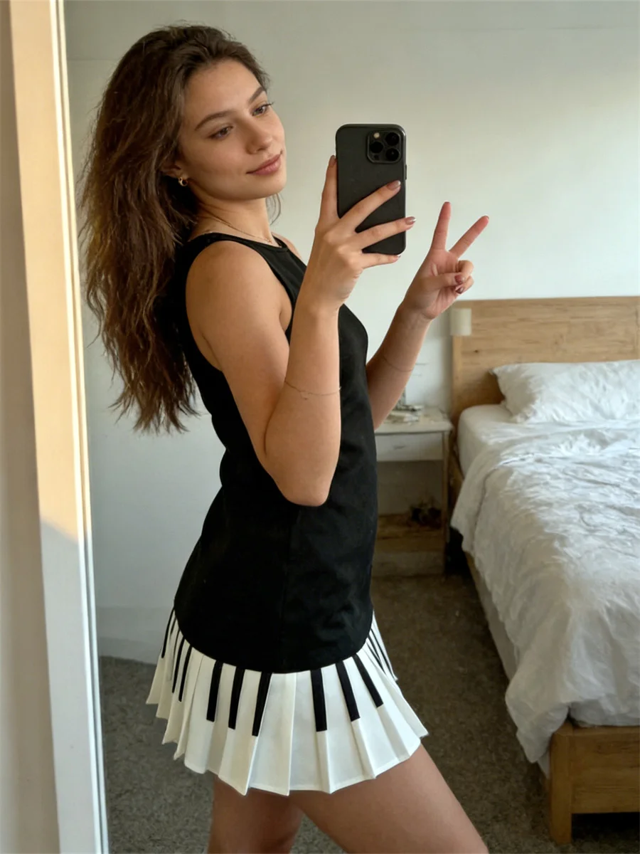 Women’s Pleated Tank Dress Summer Fashionable Crew Neck Sleeveless Patchwork Mini Dress
